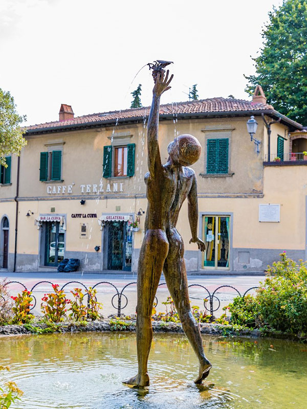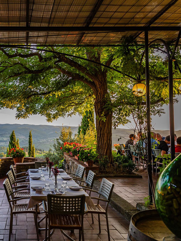 Una passeggiata nella parte antica vi regalerà colazioni con vista o aperitivi indimenticabili da Strafico, così come un pranzo nella bellissima terrazza di Oltre il Giardino, dove il glicine incornicia uno dei più belli scorci del Chianti. Potrete anche scambiare una risata con la coppia brasiliana che ha scelto Panzano come casa, accogliendo viaggiatori da tutto il mondo nel suggestivo Vescovino.